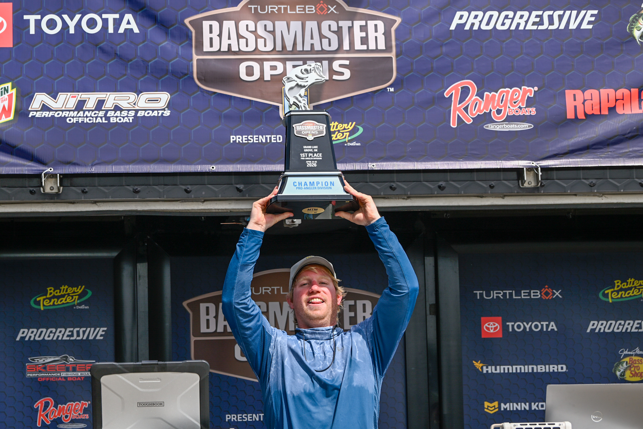 GROVE, Okla. — Wyatt Burkhalter of Alabama took a terrible practice and a lure he’d never thrown before and pieced together a masterful performance at the Turtlebox Bassmaster Open at Grand Lake O’ the Cherokees presented by Battery Tender. After landing in 4th place on Day 1, and rising into a narrow 7-ounce lead on Day 2, he sealed the deal on Saturday with his third consecutive limit over 20 pounds and won by a whopping 11 pounds 10 ounces over Wesley Baxley of Texas