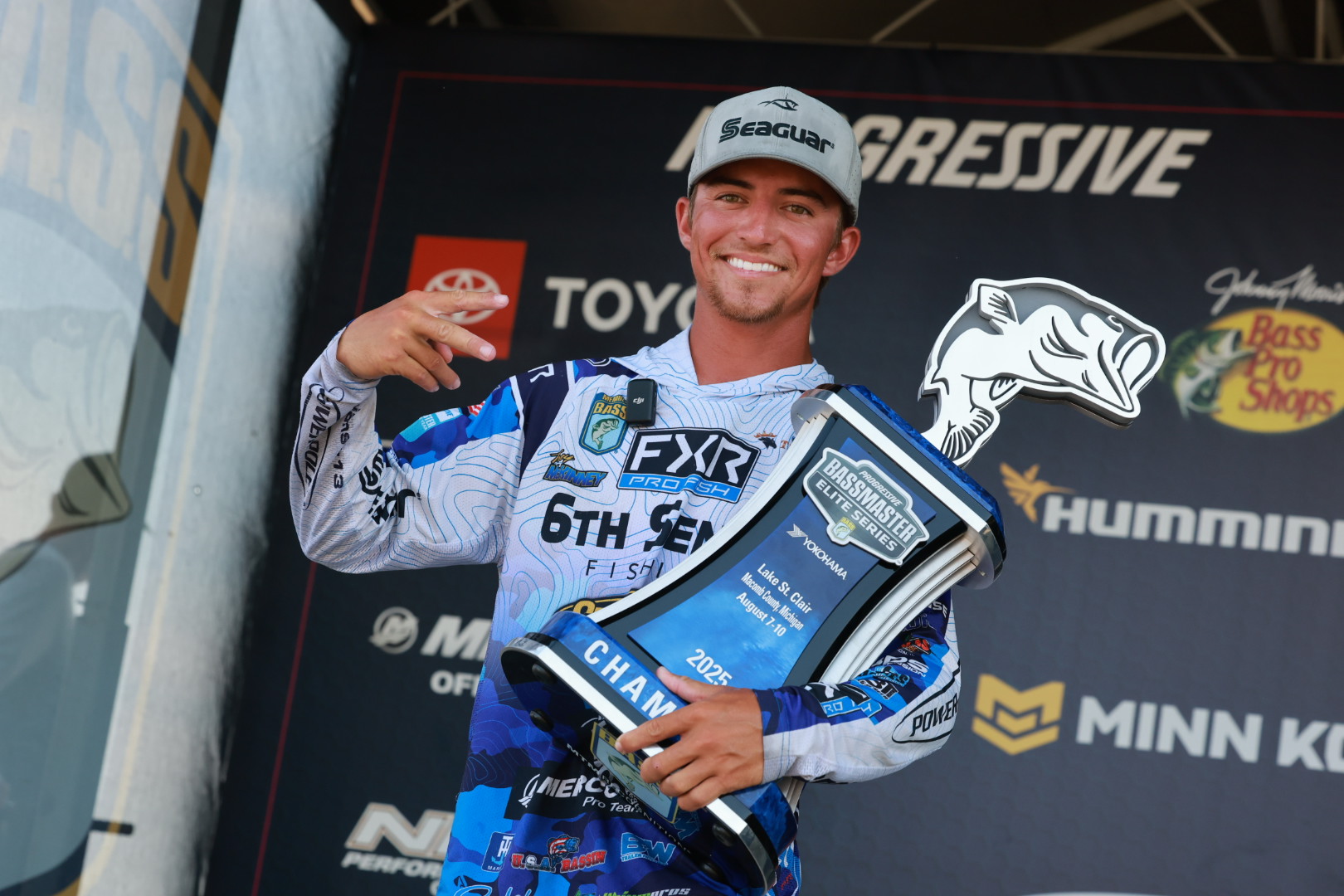 The 20-year-old from Carbondale, Ill., claimed his second Progressive Bassmaster Elite Series trophy in wire-to-wire fashion, catching 96 pounds, 1 ounce over four days at Lake St. Clair. It is the heaviest winning weight in Bassmaster competition at Lake St. Clair and the fifth heaviest winning weight in a smallmouth event in B.A.S.S. history.