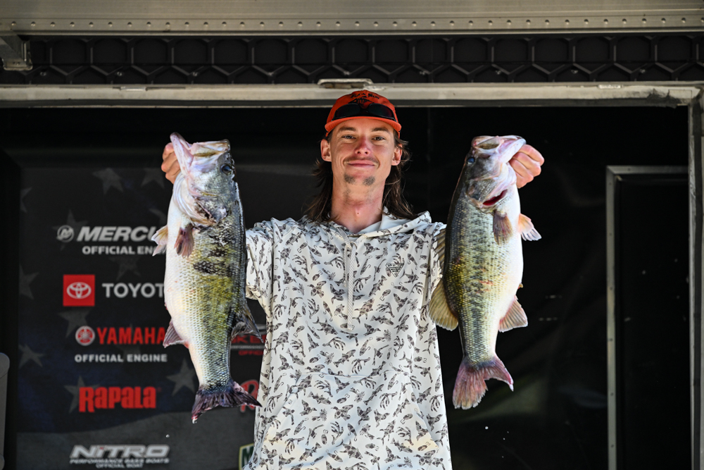 Oklahoma’s Matt Edwards leads the nonboater field with a pair of three-bass limits totaling 19-2. Texas’ Arron Slaten is second with 15-14, and Oklahoma’s Matt Manners is third with 14 pounds.